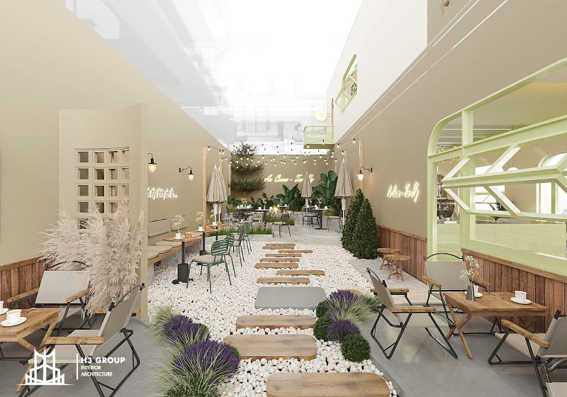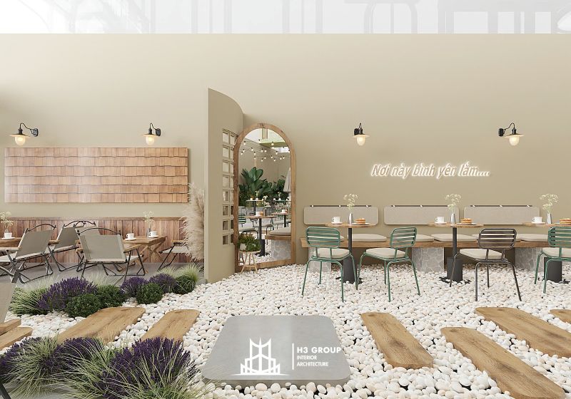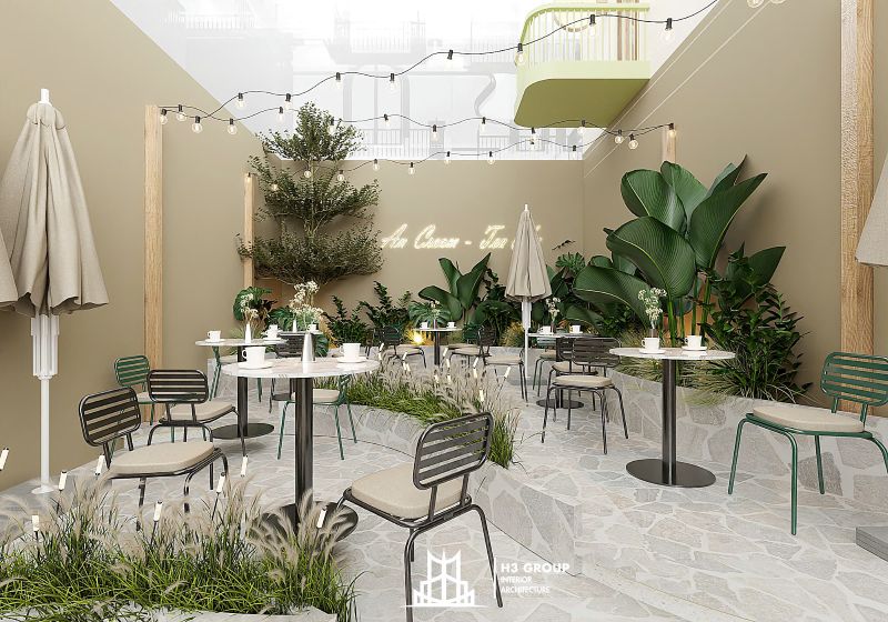 Cuối cùng, việc lựa chọn nội thất cũng đặt ra yêu cầu cao về tính linh hoạt và thẩm mỹ. Bàn ghế và vật dụng trang trí cần đáp ứng được nhiều mục đích sử dụng khác nhau: từ chill ngoài trời đến làm việc, học tập hoặc họp nhóm trong nhà. Đồng thời, tất cả các yếu tố này phải hài hòa với màu sắc chủ đạo và phong cách thiết kế chung của quán, tạo nên một tổng thể đồng nhất, tinh tế và dễ ghi nhớ.