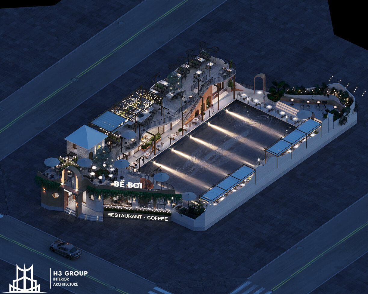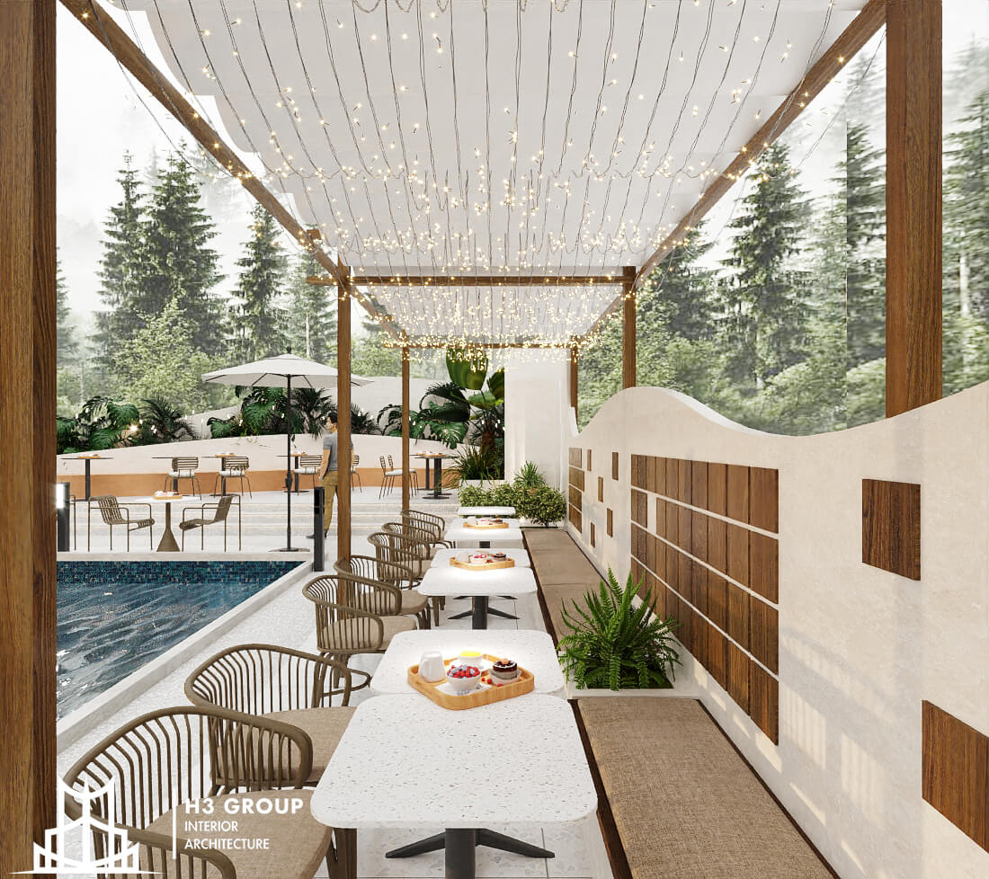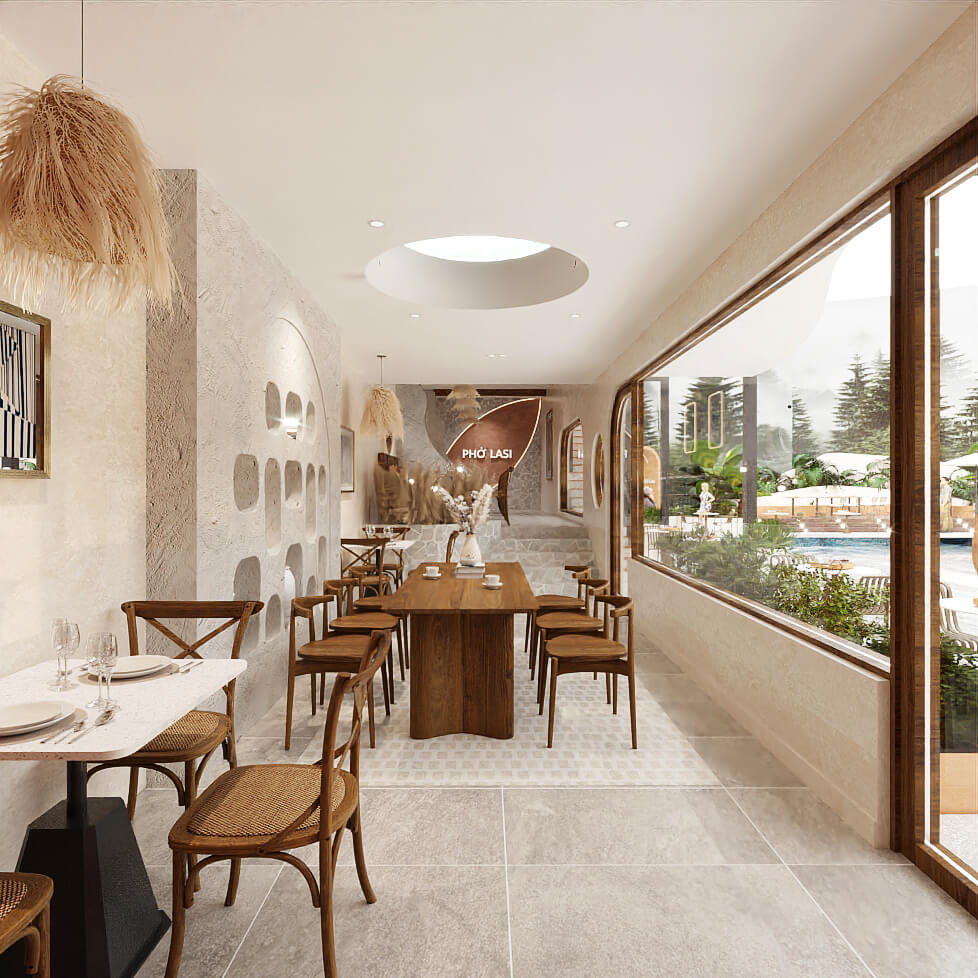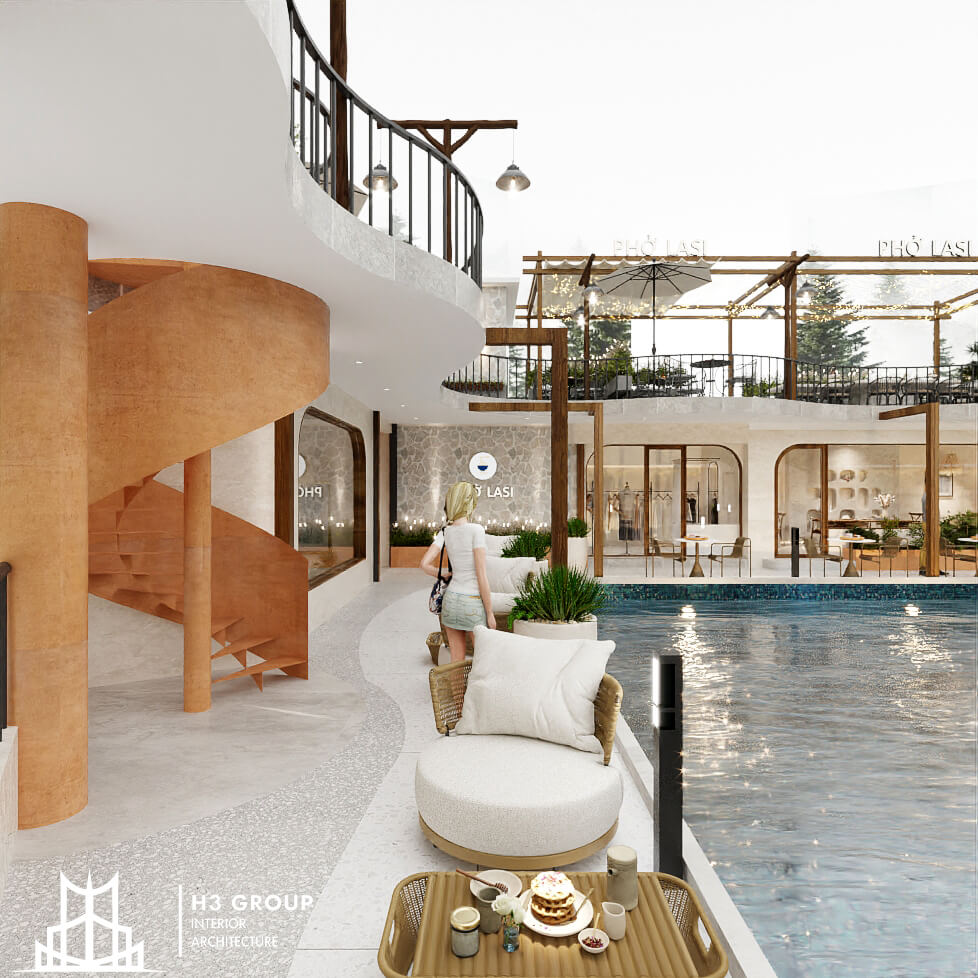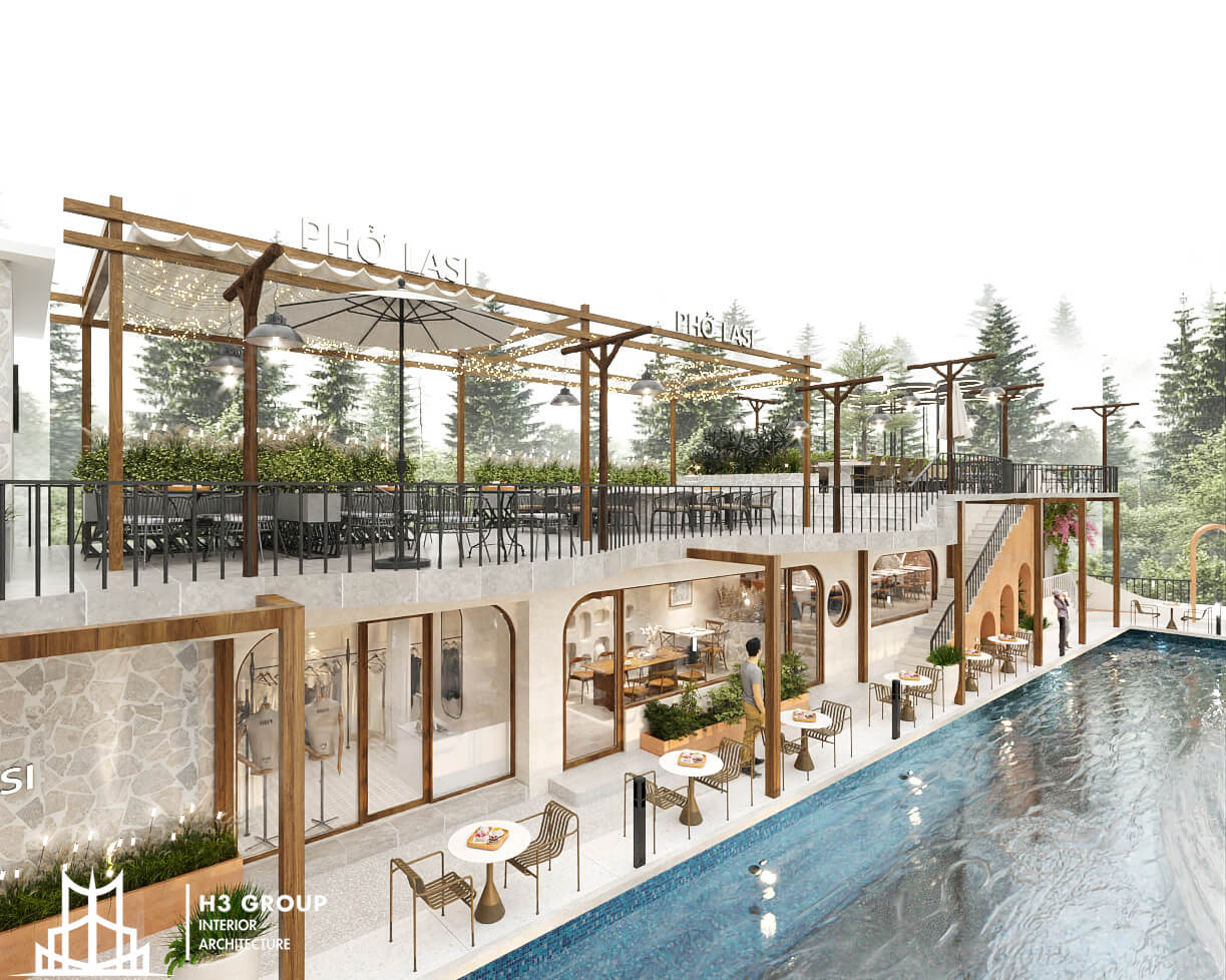 Dự án Lasi Pho đã được hoàn thiện thành công với thiết kế Địa Trung Hải ấn tượng, tối ưu hóa không gian và công năng sử dụng. Từng khu vực, từ mặt tiền thoáng đãng, không gian trong nhà ấm cúng, khu vực ngoài trời lãng mạn đến hồ bơi trung tâm độc đáo, đều được bố trí tỉ mỉ nhằm mang đến trải nghiệm trọn vẹn cho thực khách. Sự kết hợp giữa ánh sáng tự nhiên, vật liệu cao cấp và cảnh quan xanh không chỉ giúp không gian trở nên thư giãn mà còn tạo dấu ấn riêng biệt cho quán.