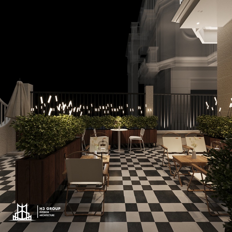 Khu vực này được bố trí một số bộ bàn ghế ngoài trời, tạo không gian mở thoáng đãng cho những khách hàng yêu thích sự tự do, thoải mái. Thiết kế tận dụng tối đa vị trí mặt bằng hướng ra phố, giúp thu hút sự chú ý của khách hàng ngay từ cái nhìn đầu tiên.