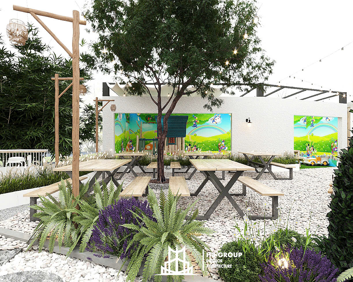 Từ một khu đất trống tại Bắc Giang, Tấm Coffee được kiến tạo thành tổ hợp quán cafe xanh mát kết hợp khu vui chơi trẻ em với phong cách sân vườn Đà Lạt. Đây là không gian lý tưởng để gia đình và người lao động quanh khu công nghiệp có nơi nghỉ ngơi, thư giãn. Cùng khám phá thiết kế nội thất quán cafe Tấm Coffee chi tiết bên dưới!