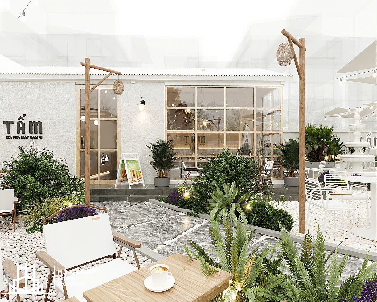 Đặc biệt, công trình được triển khai từ một khu đất trống hoàn toàn, đòi hỏi đội ngũ thiết kế phải lên phương án mặt bằng, bố trí công năng và thẩm mỹ từ đầu. Với định hướng rõ ràng là tạo ra không gian xanh mát, thư giãn và phù hợp với nhiều nhóm đối tượng, thiết kế quán cafe Tấm Coffee được định vị như một “trạm dừng chân” thân thiện giữa lòng Bắc Giang, nơi mọi người có thể tìm thấy sự thoải mái, gần gũi và mới mẻ sau những giờ làm việc căng thẳng.