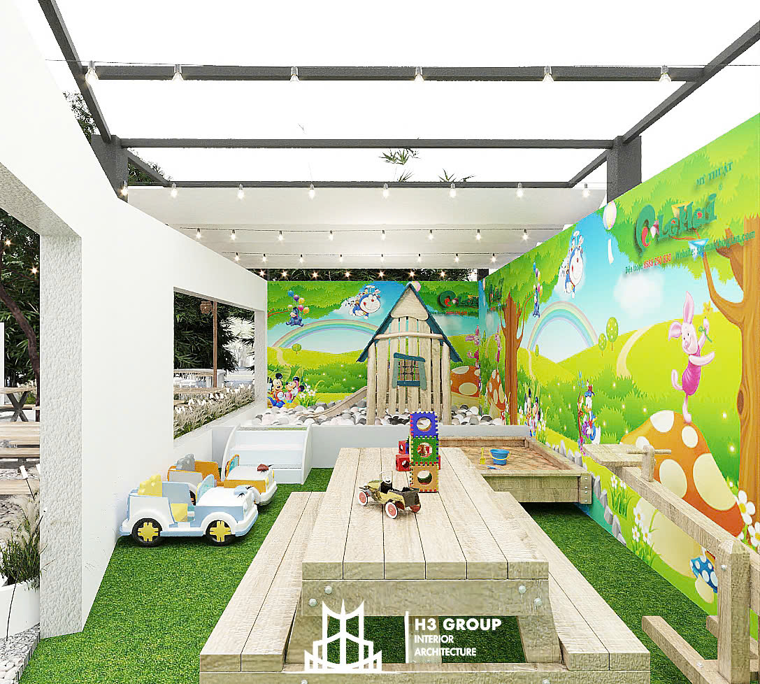 Hệ cửa mở không chỉ giúp không gian thông thoáng mà còn giúp phụ huynh dễ dàng quan sát con em mình ở mọi góc nhìn. Đây thực sự là lựa chọn lý tưởng cho các gia đình có trẻ nhỏ, nơi người lớn được thư giãn bên ly cà phê, trong khi trẻ được vui chơi tự do trong một không gian được thiết kế riêng cho mình.