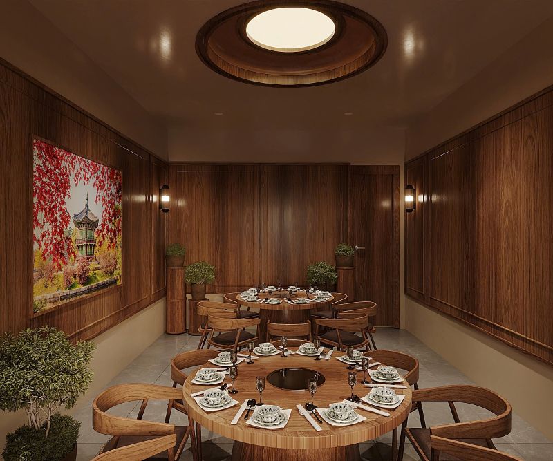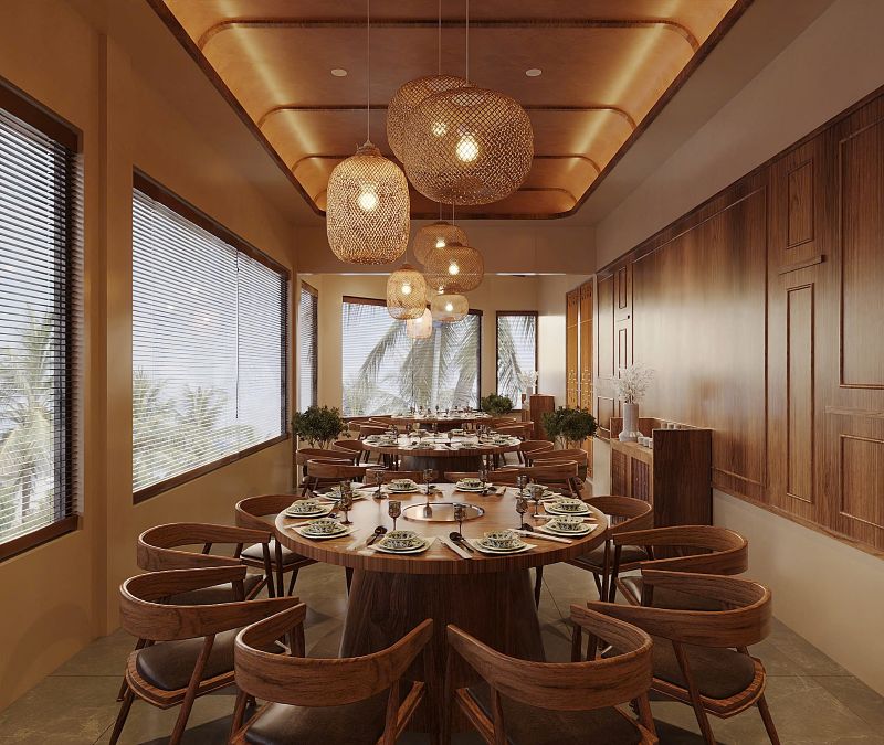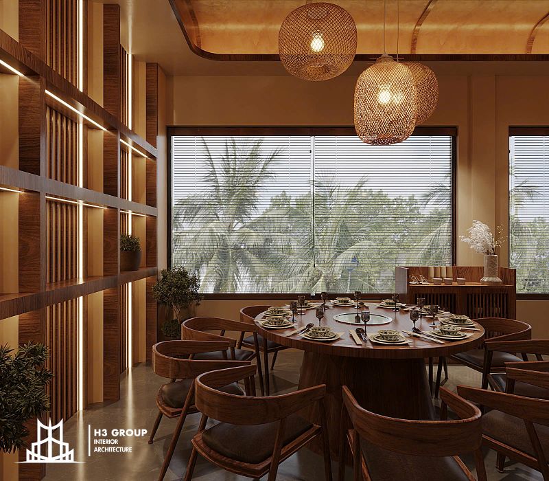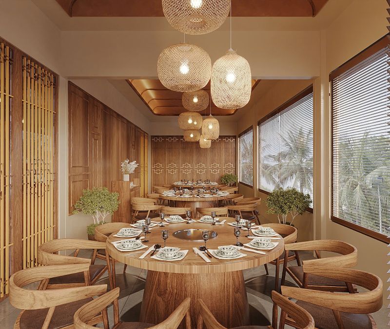 Với sự kết hợp hài hòa giữa phong cách truyền thống Việt Nam và nét hiện đại tinh tế, thiết kế nhà hàng không chỉ mang lại không gian ấm cúng, gần gũi mà còn tạo nên điểm nhấn độc đáo, thu hút khách hàng. Việc bố trí công năng hợp lý, tối ưu hóa từng khu vực, đặc biệt là khu vực bếp và các tiện ích phụ trợ, giúp đảm bảo hoạt động vận hành hiệu quả, thuận tiện.