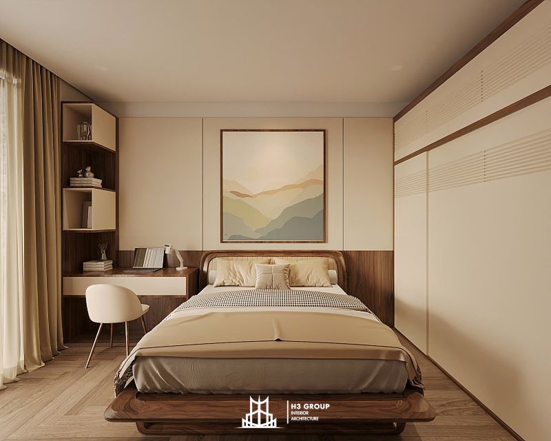 Bảng màu chủ đạo được lựa chọn kỹ lưỡng để tôn lên vẻ đẹp tự nhiên và sự trầm ấm của không gian: các sắc độ nâu gỗ, vàng nhạt, xám đá, điểm xuyết bởi đen tuyền và những gam ấm như vàng ấm, cam nhạt. Tất cả hòa quyện, tạo nên một bản phối màu nhẹ nhàng, sang trọng và đầy chiều sâu.